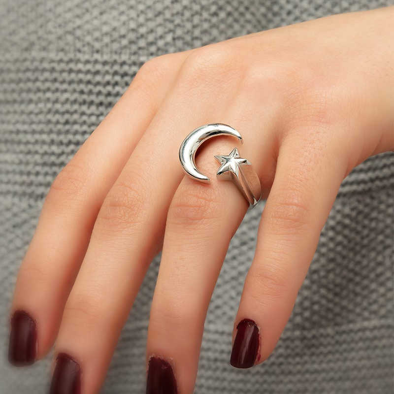 925 Ayar Gumus Ay Yildiz Yuzuk