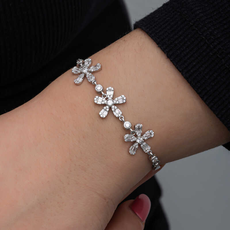Gumus Baget Cicek Desenli Kadin Bileklik