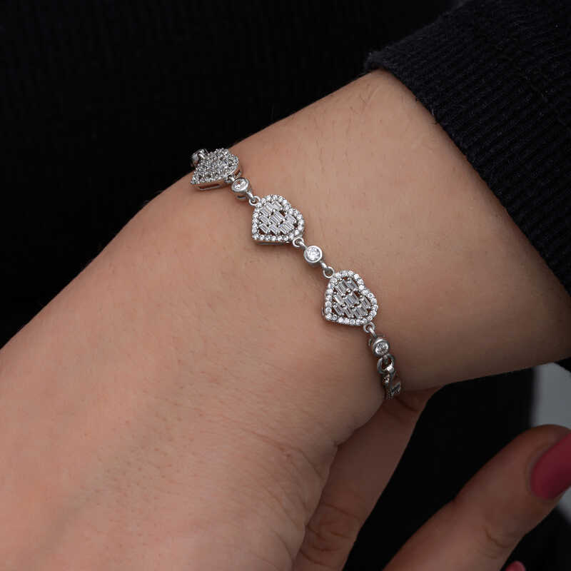 ​925 Ayar Gumus Baget Tasli Kalp Kadin Bileklik