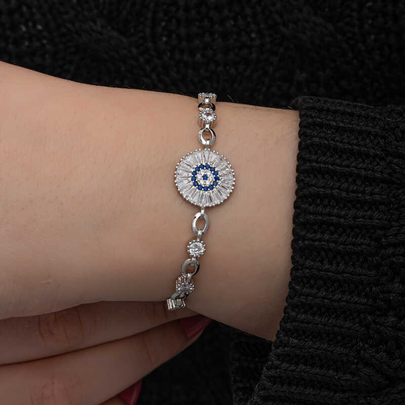 ​925 Ayar Gumus Baget Tasli Nazar Kadin Bileklik
