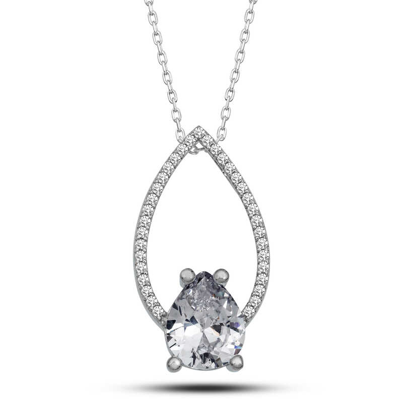 Gumus Beyaz Tasli Damla Kadin Kolye