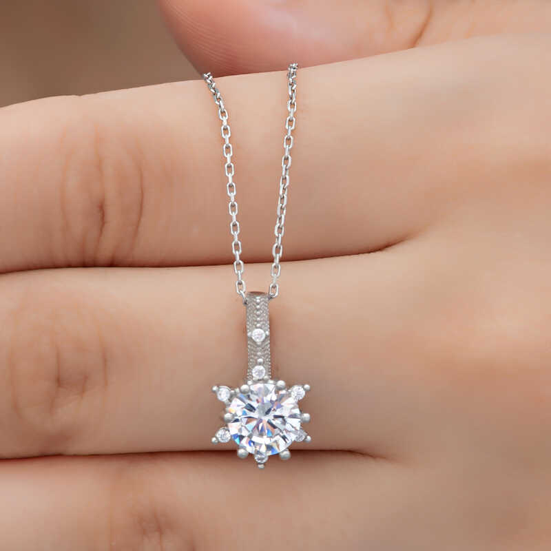 Gumus Cicek Desenli Kadin Kolye