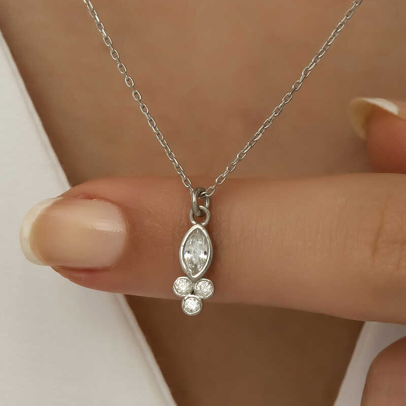 Gumus Cig Damlasi Mekik Tek Tas Bayan Kolye