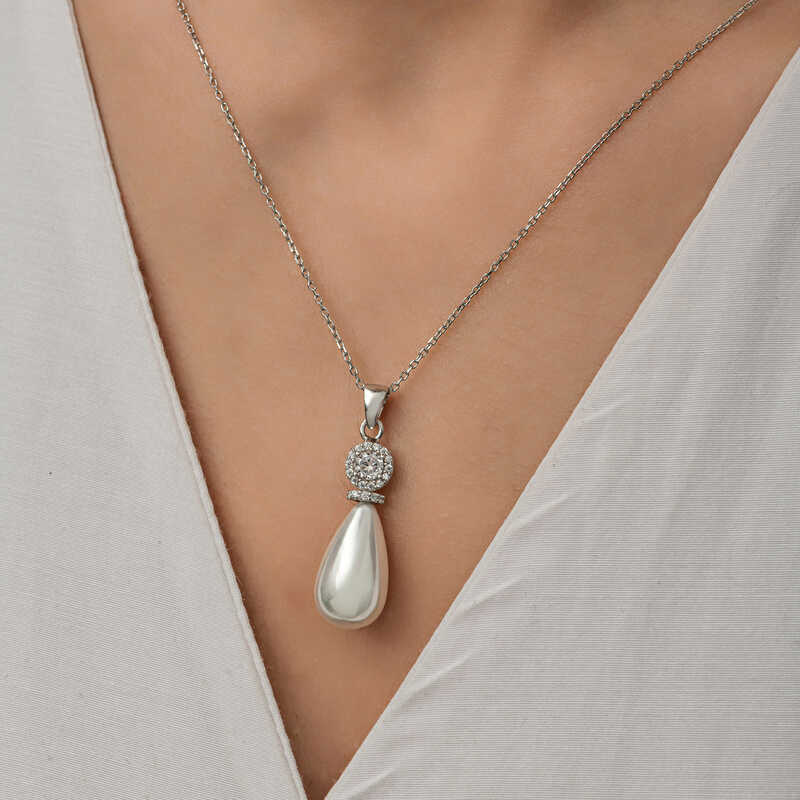 925 Ayar Gumus Damla Inci Kadin Kolye