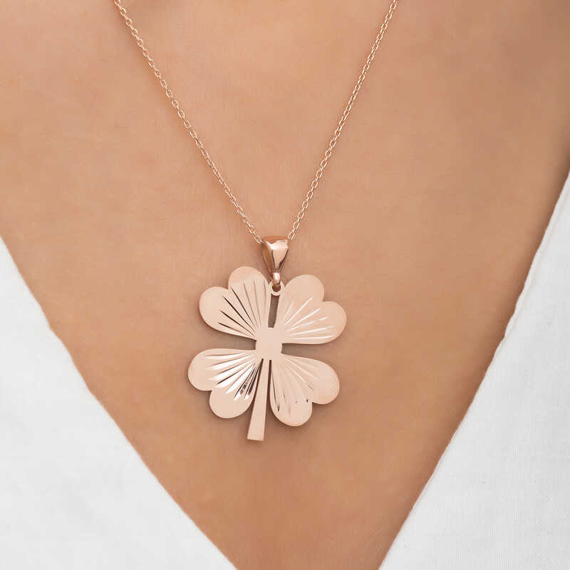Gumus Dort Yaprak Rose Yonca Kadin Kolye