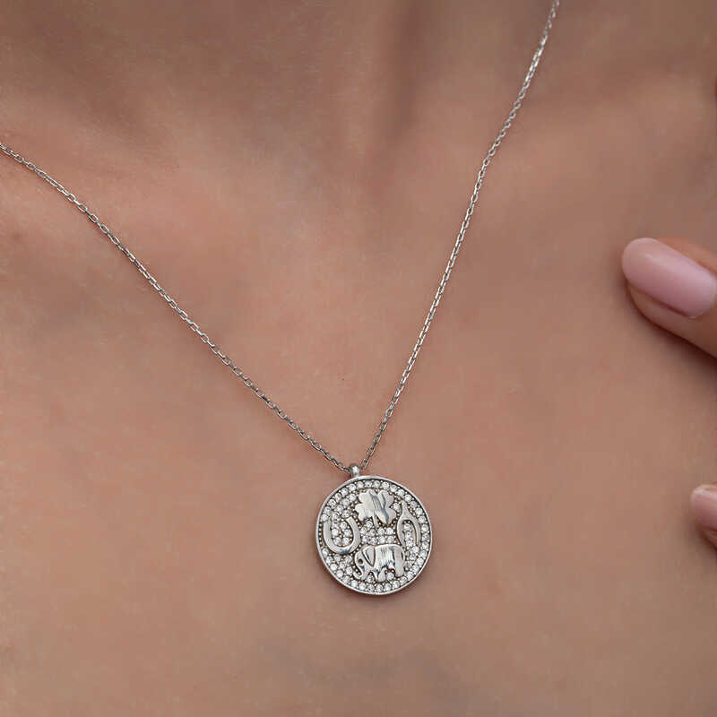 Gumus Fil Motifli Sans Kadin Kolyesi