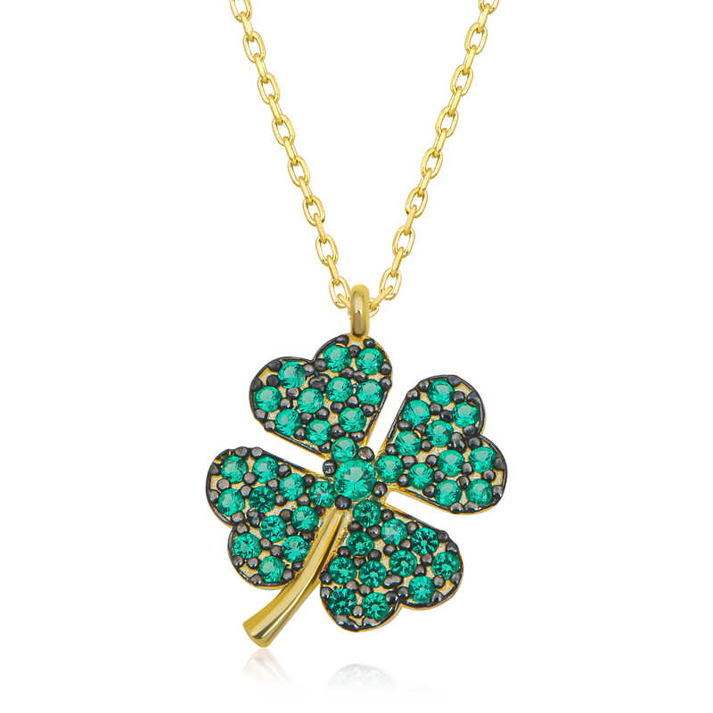 Yillardir dort yaprakli yoncanin sans getirdigine inanilinir ve bir cok insan sadece bu sebepten yonca figurleri kullanmaktadir. Yoncanin sans getirmesi disinda onlarca yarari vardir. Yonca kolyesini tasiyacak bir kisi sansini ve sifasinida yaninda tasiyacak demektir. Dort yaprakli yonca butun kulturlerde iyi sansin sembolu olarak kabul edilir. Birinci yaprak umidi, ikincisi imani, ucuncusu aski, dorduncu yaprak ise sansi simgeler. Tabiatta cok nadir bulunan bu dorduncu yapraktir. Gumus yesil zirkon taslarla suslenmis dort yaprakli yonca kadin kolye, severek kullanabileceginiz ve sevdiklerinize hediye edebileceginiz harika bir modeldir. Gumus yesil tasli kadin kolye 925 ayar gumusten imal edilmistir. Gumus kolye uzerinde gold kaplama yapilmistir. Gold kaplama yapilan gumus kadin kolyeler parlakligini uzun sure muhafaza eder, oksitlenmesi gecikir. Gumus olan zincir boyu ortalama 45 cm'dir. Tum gumus kadin kolye modellerimizde oldugu gibi gumus dort yaprakli yonca kadin kolye de el emegi ile uretilmistir. Gumus ve degerli taslar nedeniyle urun agirliginda ± %10 sapma olabilmektedir.