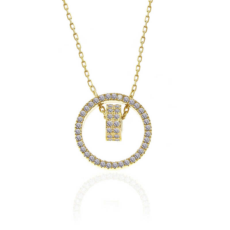 Ice ice gecmis halka kadin kolye, sembollerden hoslanmayip sadelikten yana olanlarin tercih edebilecegi oldukca sik bir tasarimdir. Gumus ic ice gecmis halka kadin kolye, son yillarda oldukca populer modeller arasindaki yerini almistir. Gumus ic ice gecmis kadin kolye 925 ayar gumusten imal edilmistir. Bu kolye uzerine gold kaplama yapilmistir. Gold kaplama yapilan urunler parlakligini uzun sure muhafaza eder. Uzerinde bulunan taslar zirkon'dur. Tum gumus kadin kolye modellerinde oldugu gibi gumus ic ice gecmis halka kadin kolye modeli de el emegi ile uretilmistir. Gumus ve degerli taslar nedeniyle belirtilen ortalama urun agirliginda ± %10 sapma olabilmektedir.