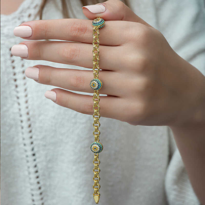 Gumus Gold Sosyete Gozlu Zincir Bileklik
