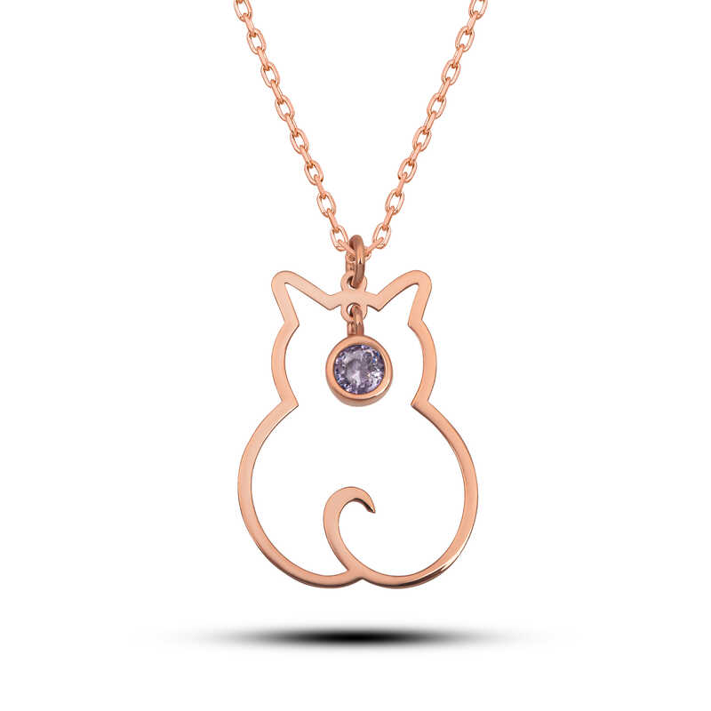 Gumus Haziran Ayi Dogum Tasi Kedi Kadin Kolye