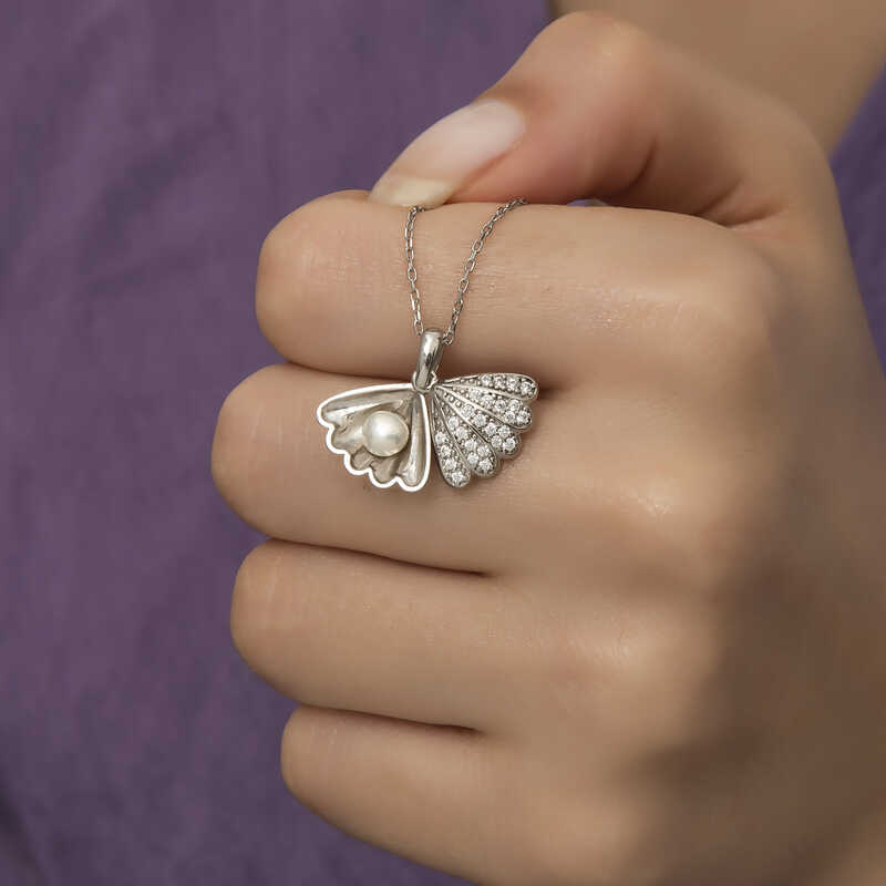 ​Gumus Incili Istiridye Bayan Kolye
