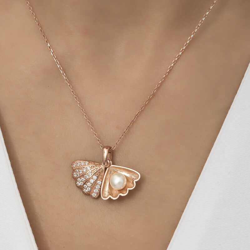 925 Ayar Gumus Incili Istiridye Kadin Gumus Kolye