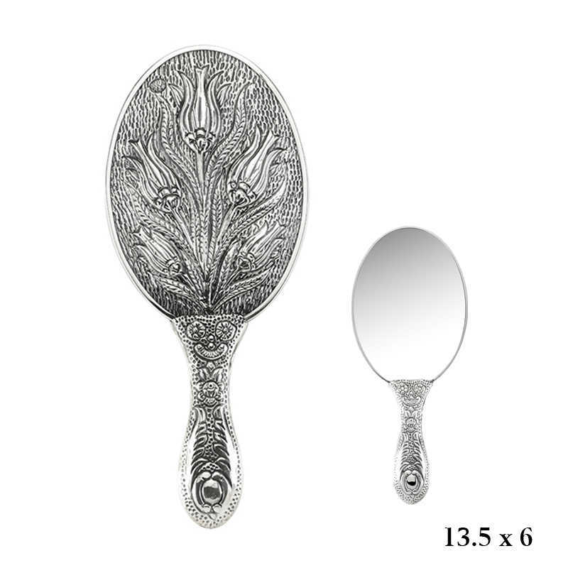 925 Ayar Gumus Lale Motifli El Aynasi