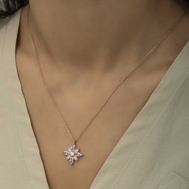 925 Ayar Gumus Lila Tasli Umut Cicegi Kadin Gumus Kolye