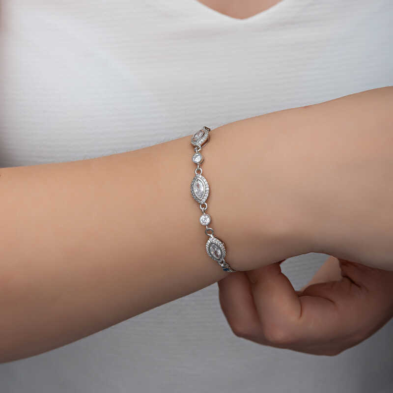 Gumus Mekik Zirkon Tasli Kadin Bileklik