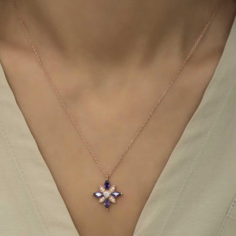 925 Ayar Gumus Mor Tasli Umut Cicegi Gumus Kolye