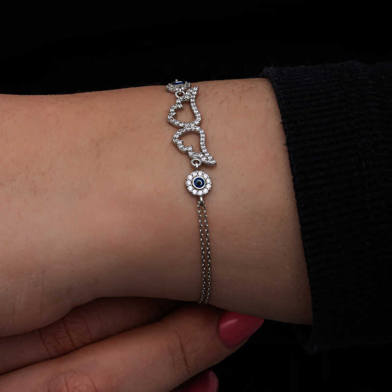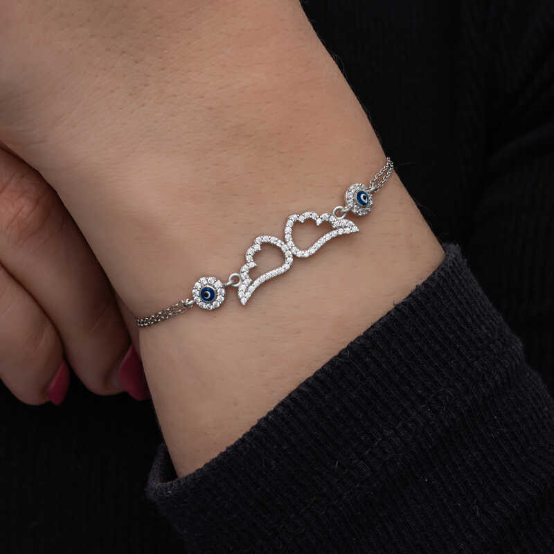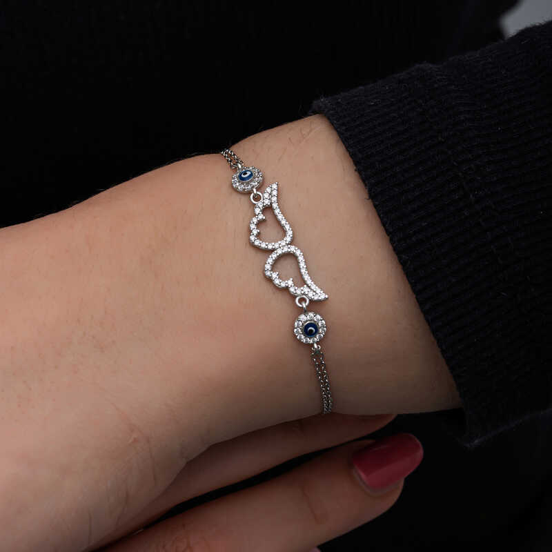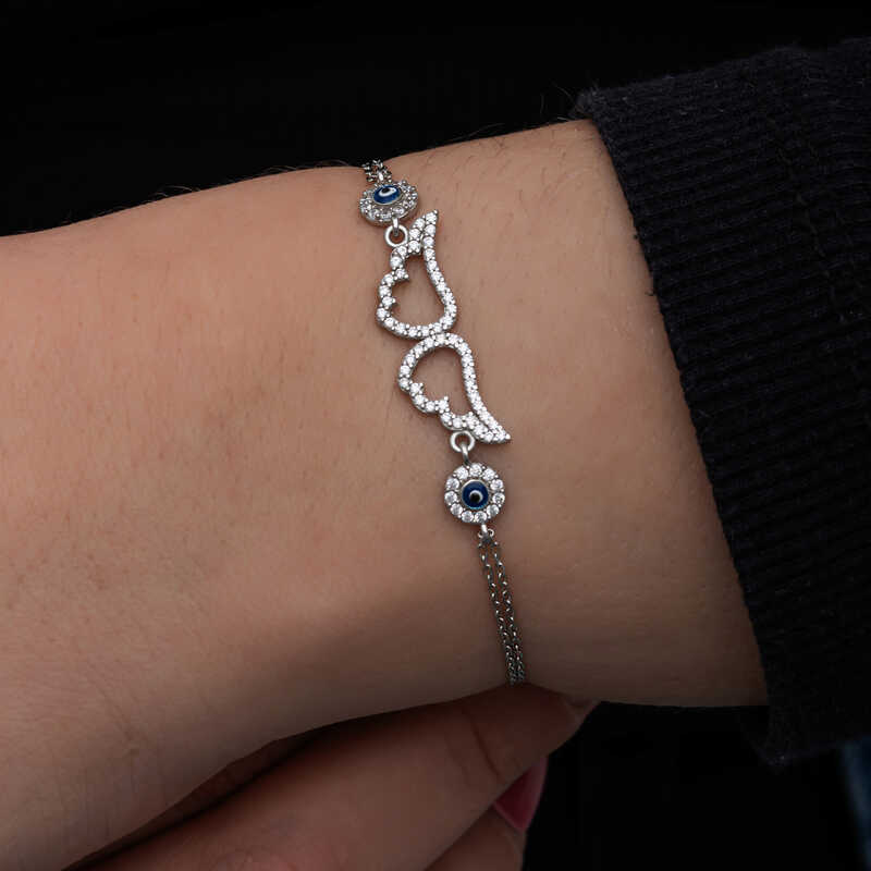 925 Ayar Gumus Nazarli Melek Kanadi Kadin Bileklik