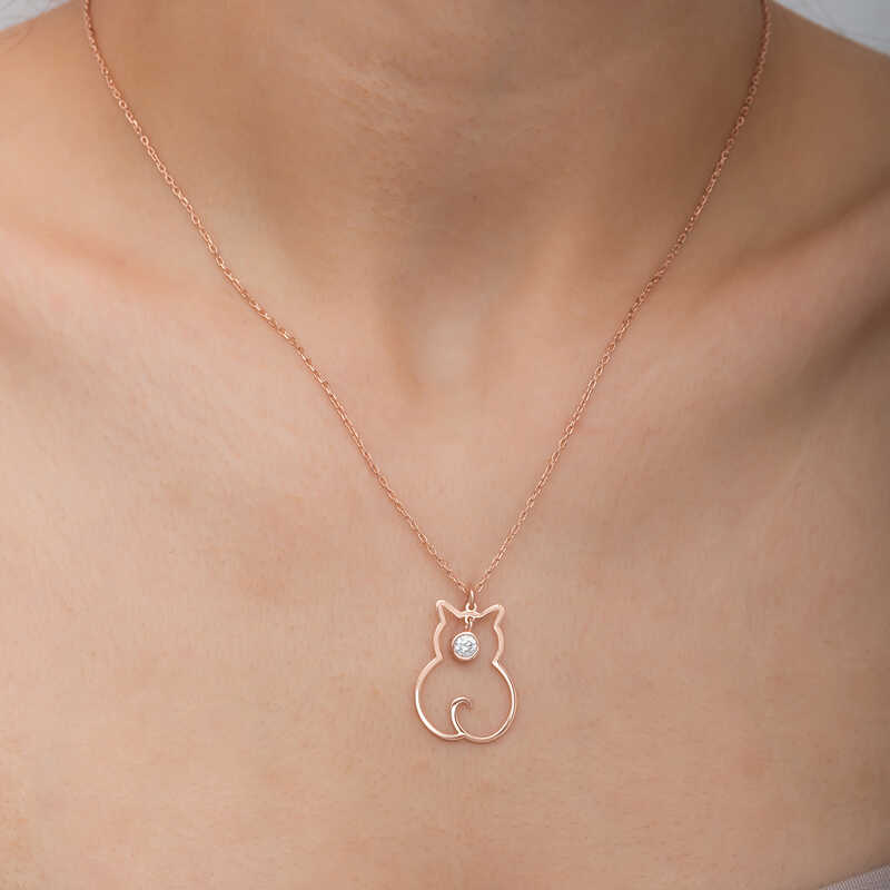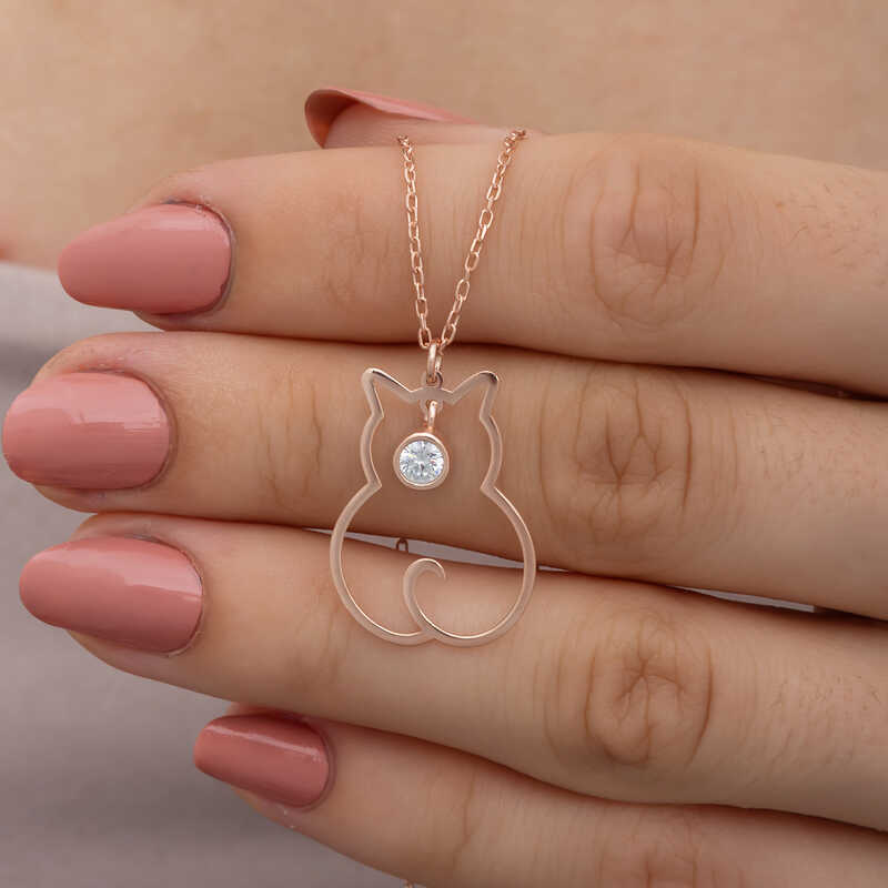 Gumus Nisan Ayi Dogum Tasi Kedi Kadin Kolye