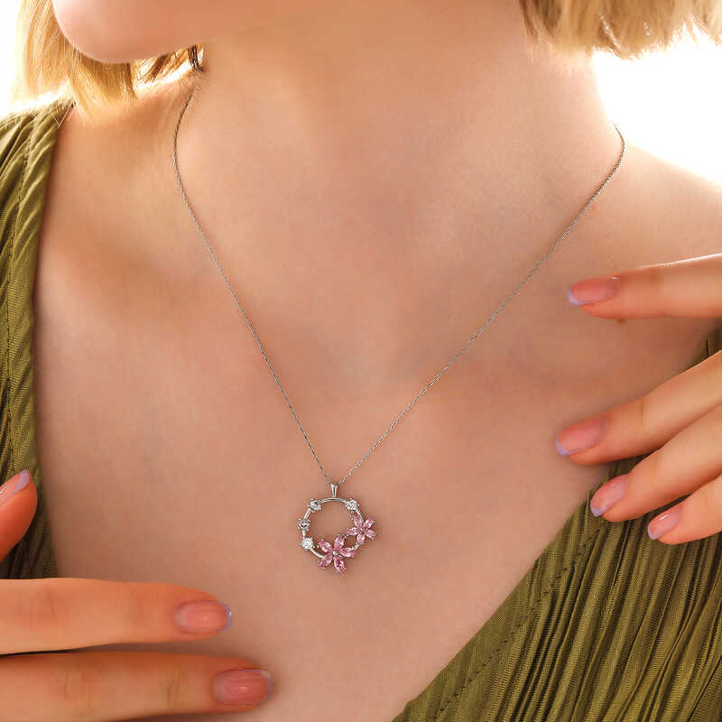 925 Ayar Gumus Pembe Cicek Kadin Kolye