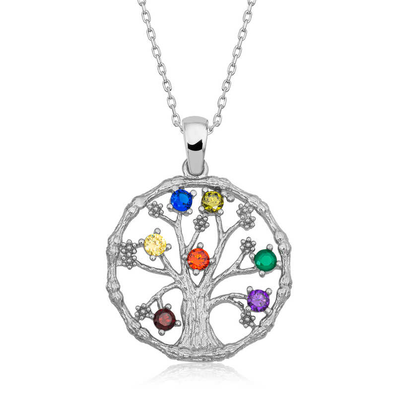 925 Ayar Gumus Renkli Tasli Hayat Agaci Kadin Gumus Kolye