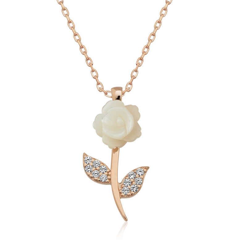 Gumus Rose Beyaz Gul Kolye