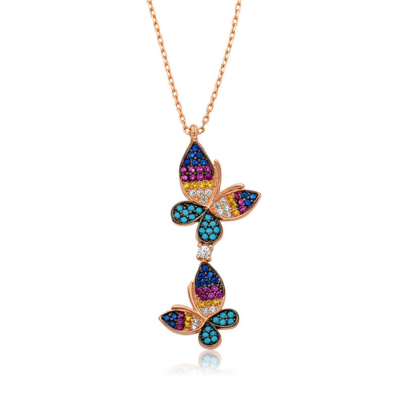 Gumus Rose Cift Kelebek Kolye