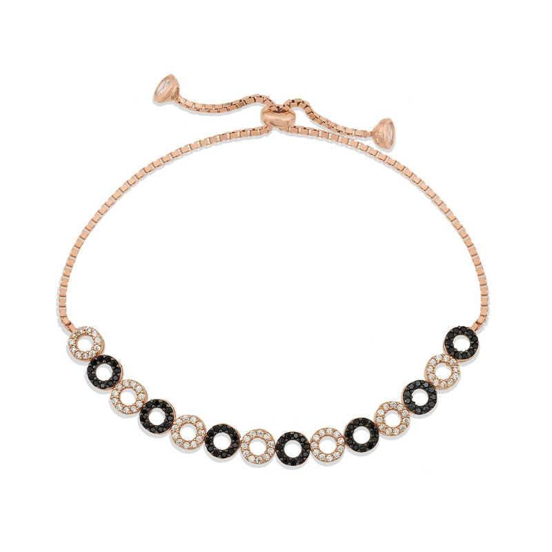 Gumus Rose Siyah Beyaz Tasli Halka Asansor Bileklik