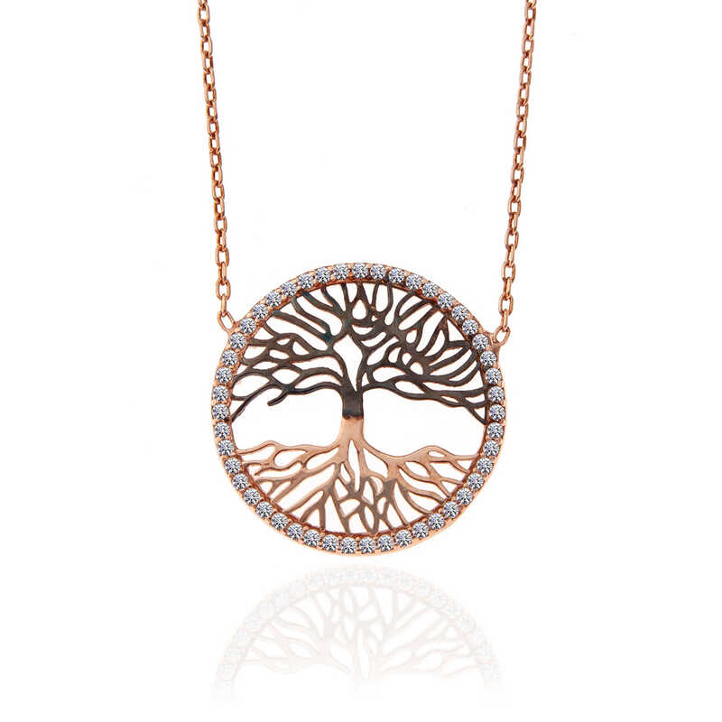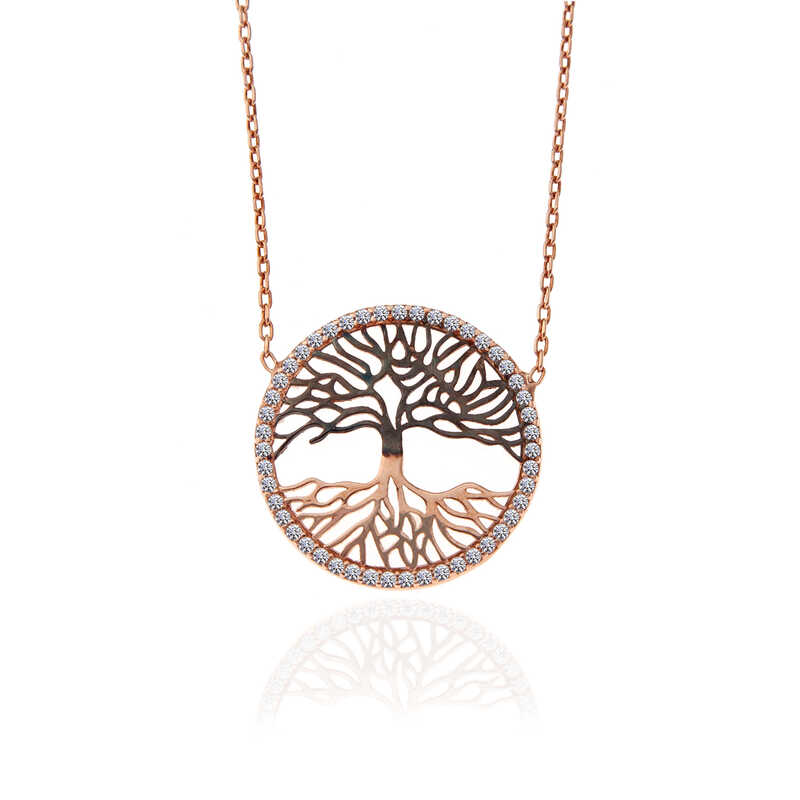 925 Ayar Gumus Rose Hayat Agaci Kadin Kolye