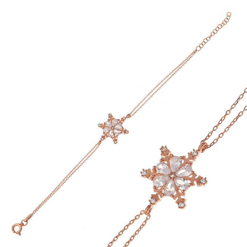 Gumus Rose Kar Cicegi Kadin Bileklik