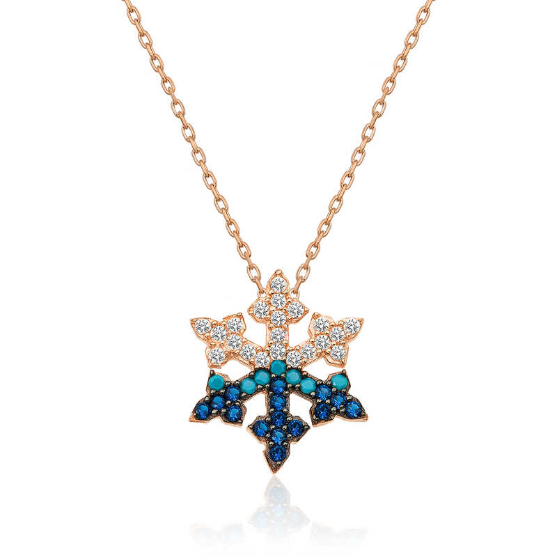 Kadinlarin isiltisi, berrakligi kar tanesine benzetilip ozel olarak tasarlanmistir. Kar tanesinin asilligi her donemde dikkat cekmeyi basarmistir. Bunun yaninda insanlarin tipki kar taneleri gibi birbirlerine zarar vermeden de mutlu bir sekilde yasayabileceklerini sembolize etmektedir. Bu sik kolye; dogum gunu hediyesi, sevgililer gunu hediyesi veya annelere hediye olarak ozel gunlerde tercih edilebilecek mukemmel bir secenektir. Kolye, 925 ayar gumusten imal edilmistir. Gumus uzerine rose altin kaplama yapilmistir. Rose altin kaplama yapilan urunler parlakligini uzun sure muhafaza eder, gumusu pembe renge donusturur ve oksitlenmesi gecikir. Tum gumus kolyelerde oldugu gibi bu gumus kar tanesi kolye de tamami el emegi ile uretilmistir. Gumus ve degerli taslar nedeniyle belirtilen ortalama urun agirliginda ± %10 sapma olabilmektedir.