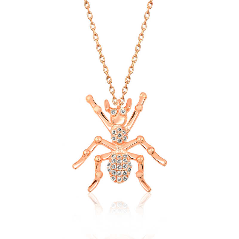 925 Ayar Gumus Rose Orumcek Kadin Gumus Kolye