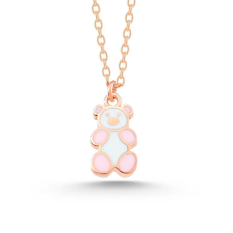 925 Ayar Gumus Rose Renkli Ayicik Kadin Kolye