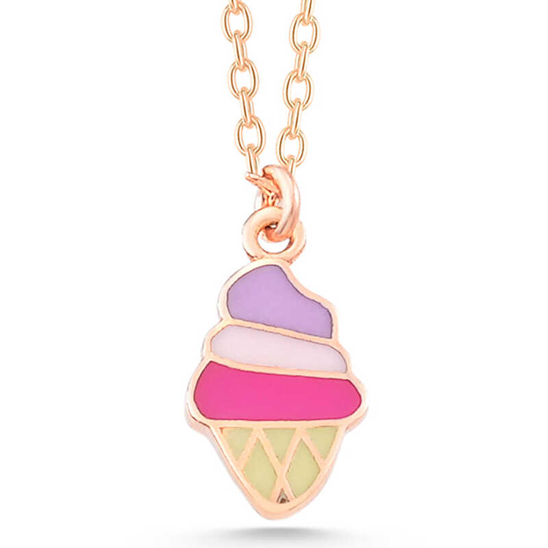 925 Ayar Gumus Rose Renkli Dondurma Kadin kolye