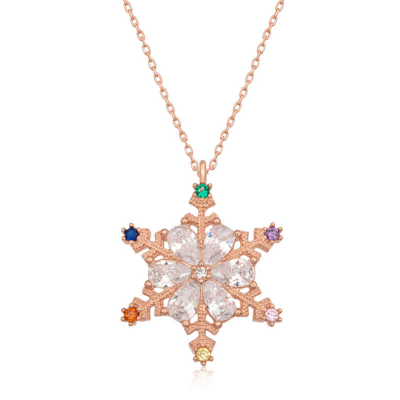Gumus Rose Renkli Tasli Kar Tanesi Kadin Kolye