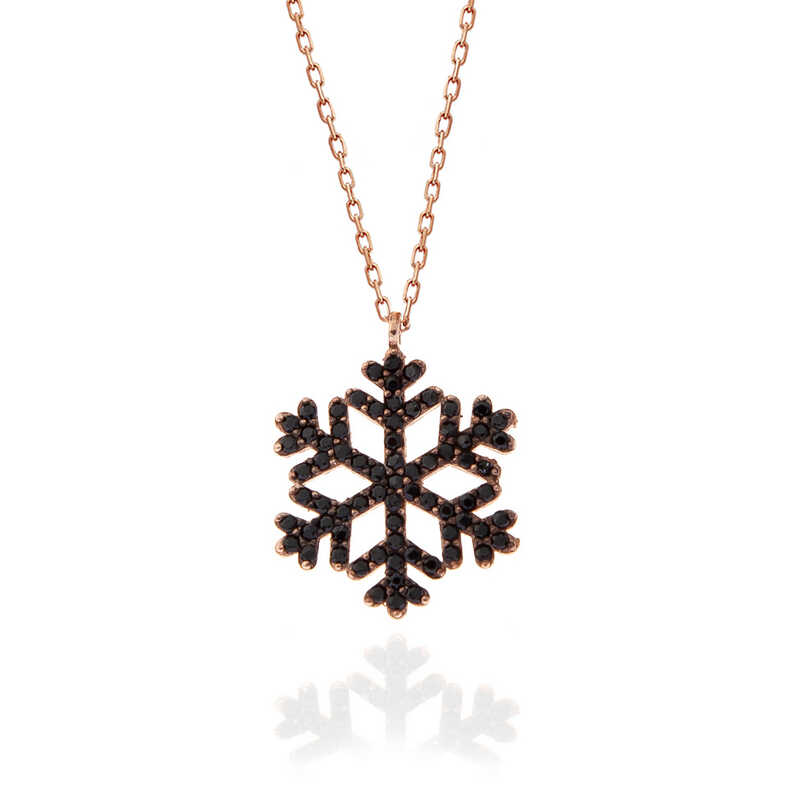 Her kar tanesinden aslinda sadece bir tane var. Sevdiginiz kisiye hediye ettiginiz kar tanesi kolye ile onun sizin icin essiz ve biricik oldugunu sessizce dillendirmis oluyorsunuz. Sizlerde her zevke uygun gumus kar tanesi kadin kolye modeli ile sikliginiza isilti katin. Kar tanesi kadin kolye 925 ayar gumusten imal edilmistir. Gumus uzerine rose kaplama yapilmistir. Rose kaplama yapilan gumus kadin kolye modelleri parlakligini uzun sure muhafaza eder ve oksitlenmesi gecikir. Kolye uzerinde bulunan siyah taslar zirkondur. Gumus olan zincir boyu ortalama 45 cm'dir. Gumus siyah tasli kar tanesi kadin kolye modeli diger kar tanesi kadin kolye modelleri gibi el emegi ile uretilmistir. Gumus ve degerli taslar belirtilen nedeniyle urun agirliginda ± %10 sapma olabilmektedir.