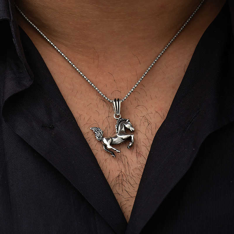 Turk kulturunde atlarin yeri son derecede onemlidir, atlar guc ve ozgurlugu simgeler. Basarilarinin sahlanacagi, sevdikleriniz icin murat sembolu olan at kolye ile anlam dolu bir hediye vermeye ne dersiniz?Ozel tasarim sahlanmis at kolye boynunuzdan cikarmak istemeyeceginiz kolyelerden biri olacaktir. 925 ayar gumusten imal edilmis bu ozel tasarim kolyeyi sevdiginiz ve deger verdiginiz kisilere gucun ve ozgurlugun sembolu olarak hediye edebilirsiniz. Gumus sahlanmis at kolye uzerine oksit kaplama yapilmistir. Oksit kaplama yapilan gumus kolye modelleri parlakligini uzun sure muhafaza eder. Tum gumus kolye modellerinde oldugu gibi gumus sahlanmis at kolye modeli de el emegi ile uretilmistir. Gumus ve degerli taslar nedeniyle belirtilen ortalama urun agirliginda ± %10 sapma olabilmektedir.