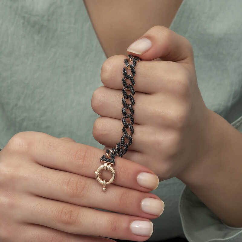 Geleneksel ve gosterisli motiflerden, sade tasarimlara kadar genis bir yelpazede sizlere sunulan bileklik modelleri her stilden kadinin begenisini toplamayi basariyor. Zarif ve ayni zamanda sik bir dis gorunum elde edebileceginiz, klasik ya da spor giyim tarzina uygun her ortamda on plana cikmayi basarabileceginiz bilek modellerine sahip olabilirsiniz. Genis model secenegiyle sizlere sunulan bileklik modellerini inceleyerek sizler de uzun sure kullanabileceginiz gumus takilara sahip olabilirsiniz. Ozel gunlerde sevdiklerinize hediye olarak da sunabileceginiz bileklik modellerimiz sizleri bekliyor. Gumus siyah tasli gurmet bayan bileklik 925 ayar gumusten imal edilmistir. Bu bileklik uzerine rose kaplama yapilmistir. Rose kaplama yapilan urunler parlakligini uzun sure muhafaza eder, gumusu rose renge donusturur. Tum gumus bayan bileklik modellerinde oldugu gibi gumus siyah tasli gurmet bayan bileklik modeli de el emegi ile uretilmistir. Bilekligin uzunlugu 18.00 cm'dir. Gumus ve degerli taslar nedeniyle belirtilen ortalama urun agirliginda ± %10 sapma olabilmektedir.