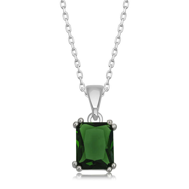 Gumus Yesil Kristal Kare Tasli Kadin Kolye