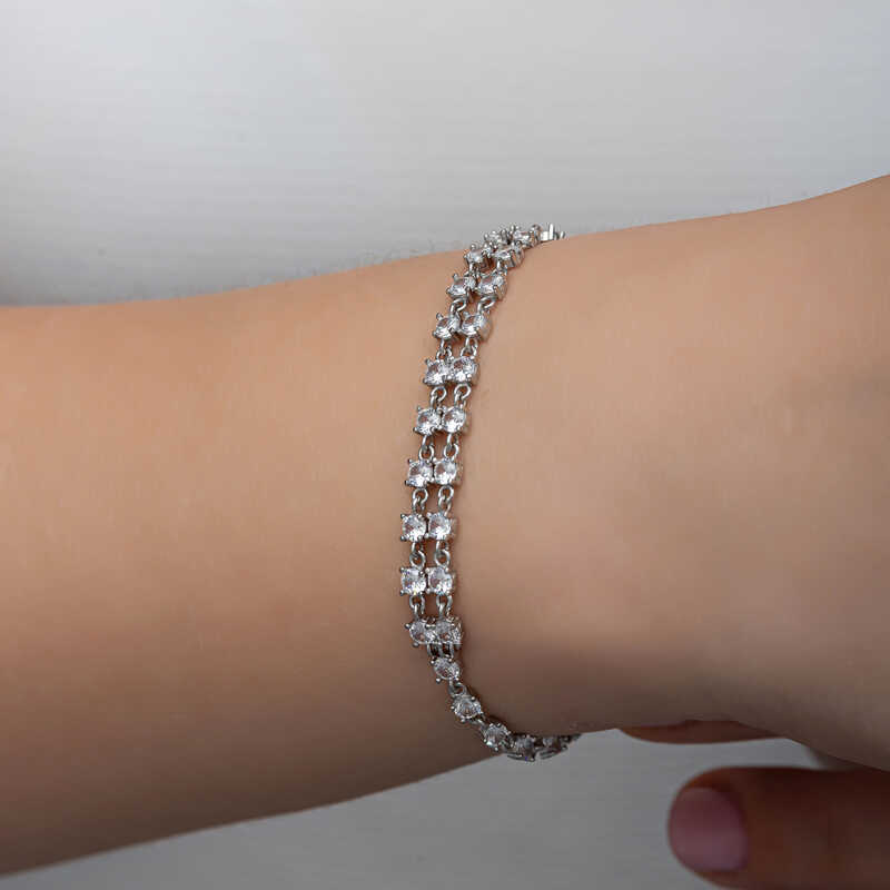 Gumus Zirkon Tasli Cift Sira Kadin Bileklik