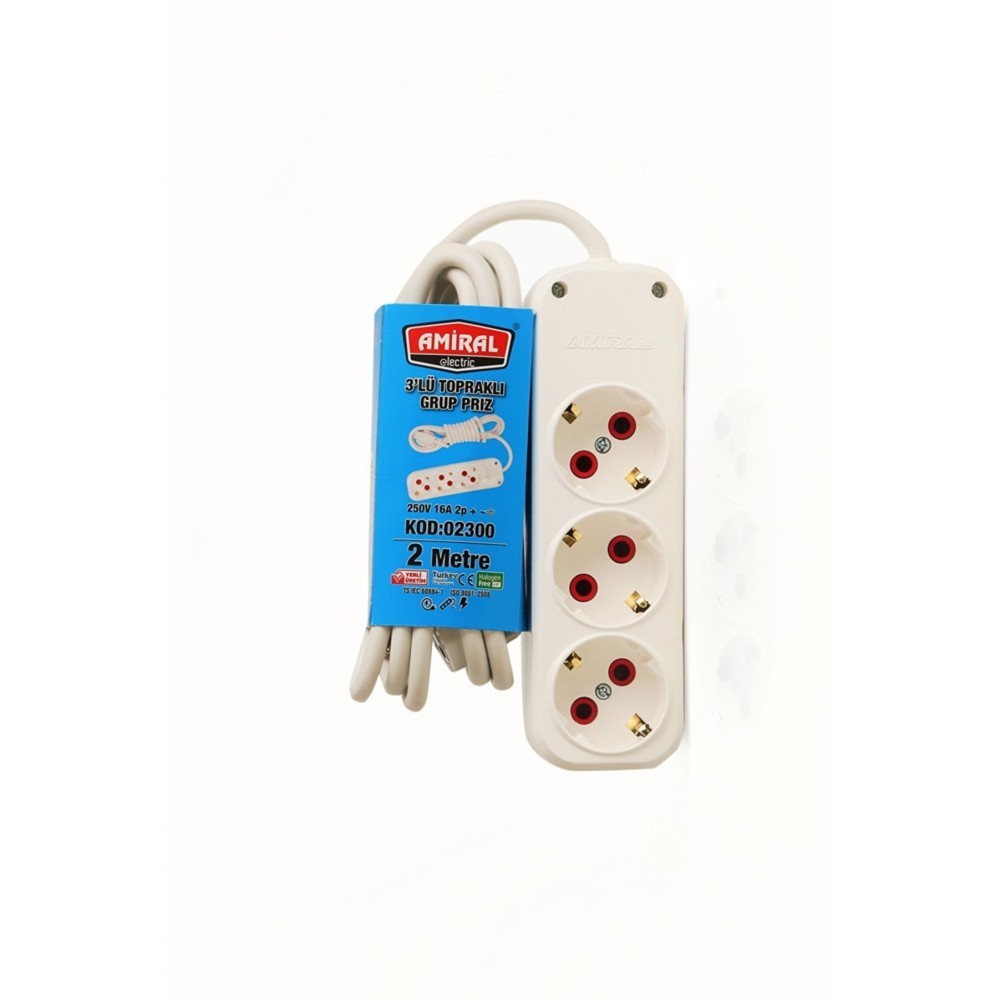 Amiral 3' lu Toprakli 2 Metre Kablolu Grup Priz