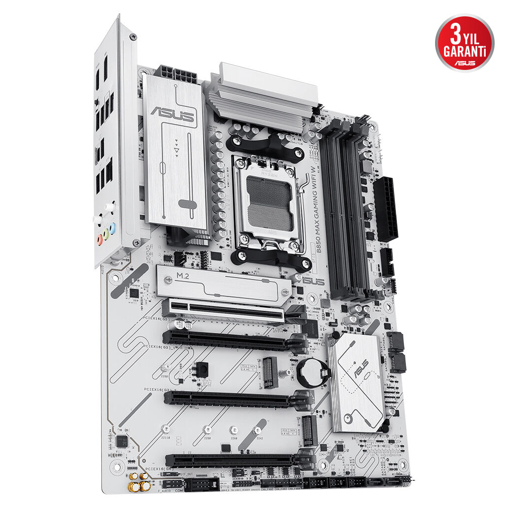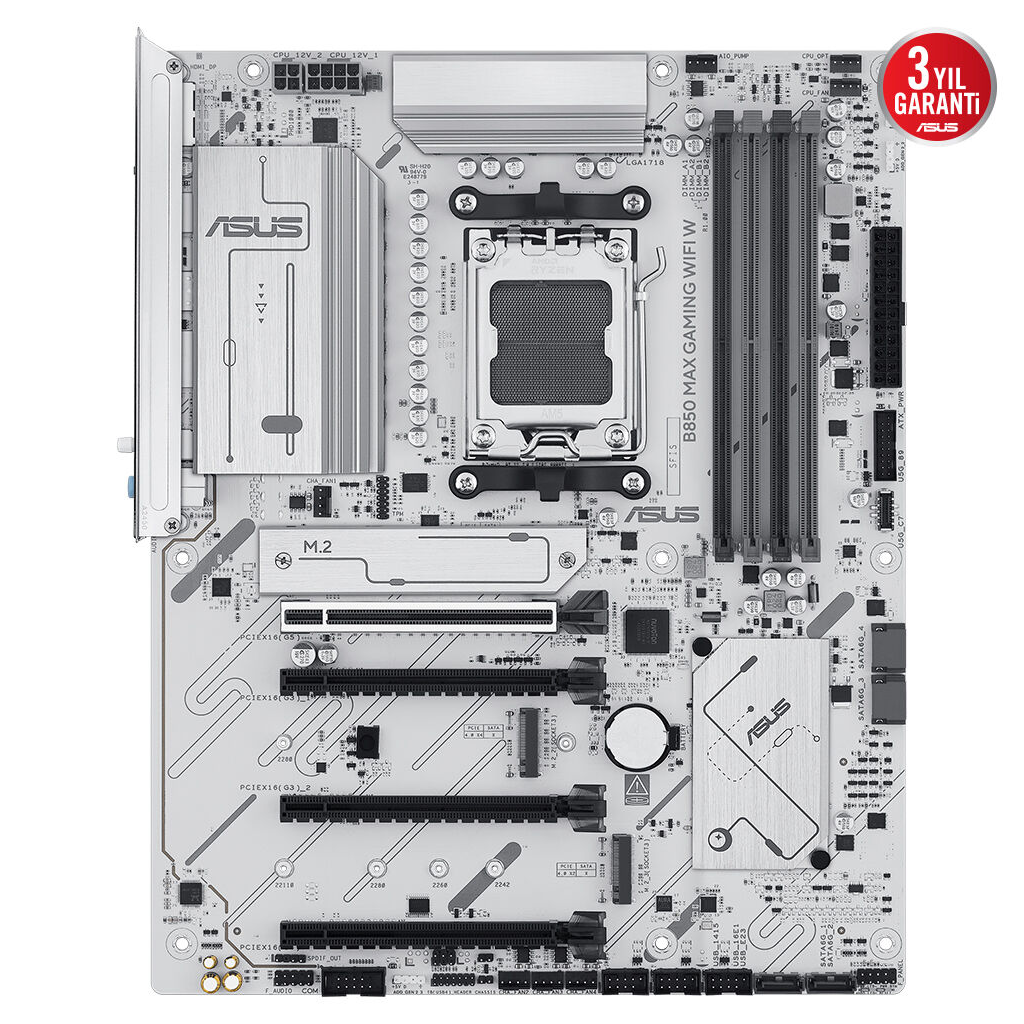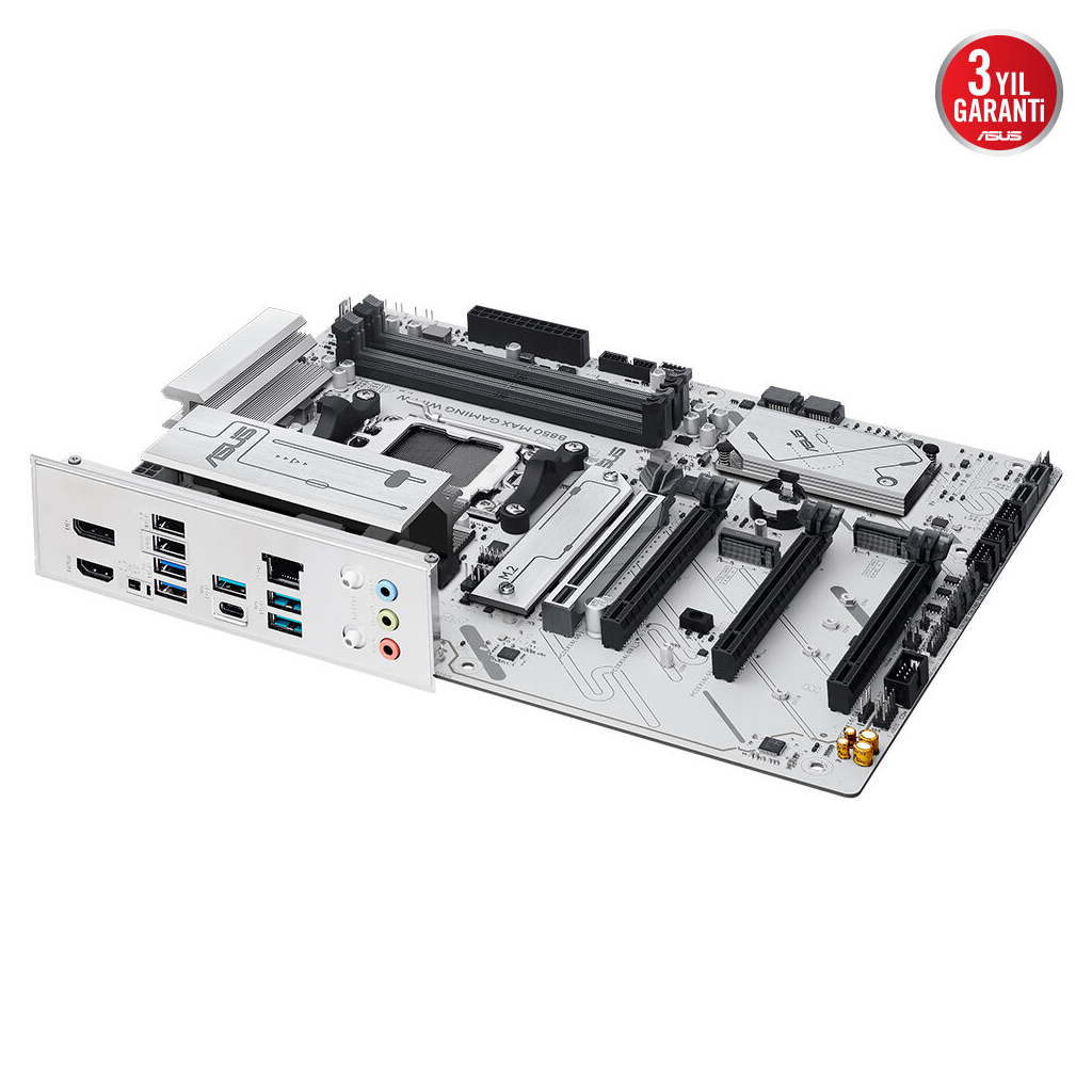 ASUS B850 MAX GAMING WIFI W, 4xDDR5, 3x M2, HDMI, DP, Type-C, Wi-Fi 6E, Bluetooth v5.3, AM5 Soket GAMING BEYAZ Anakart