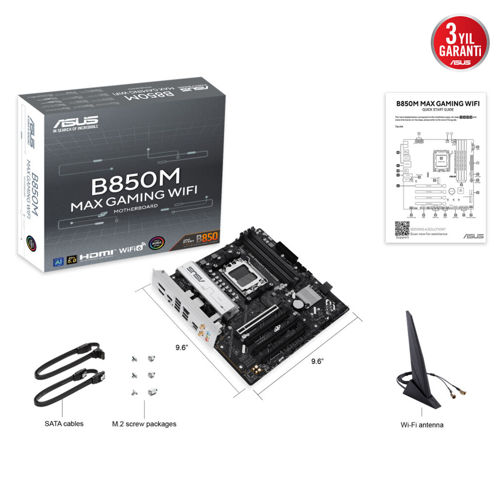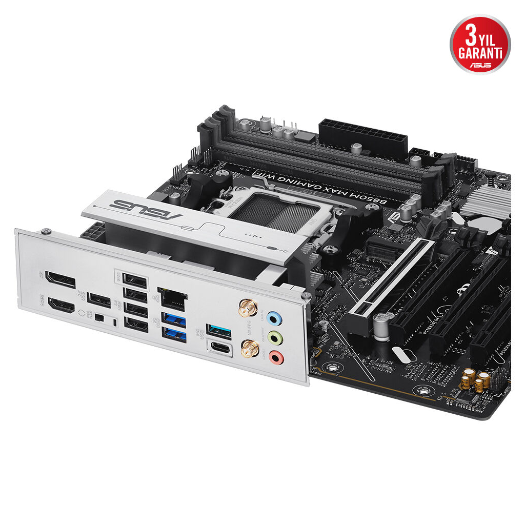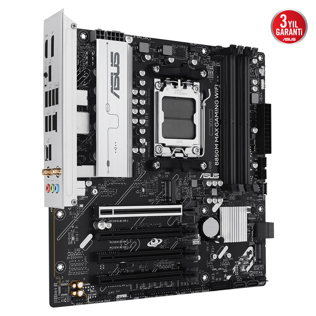 ASUS B850M MAX GAMING WIFI, 4xDDR5, 3x M2, HDMI, DP, Type-C, Wi-Fi 6, Bluetooth v5.4, AM5 Soket GAMING Anakart