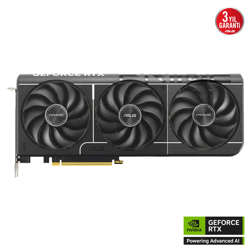 Küçük Form Faktörü için hazir olan ASUS Prime GeForce RTX™ 5070 OC Edition 12GB GDDR7, üstün sogutma için üç adet eksen teknolojili fana sahip.