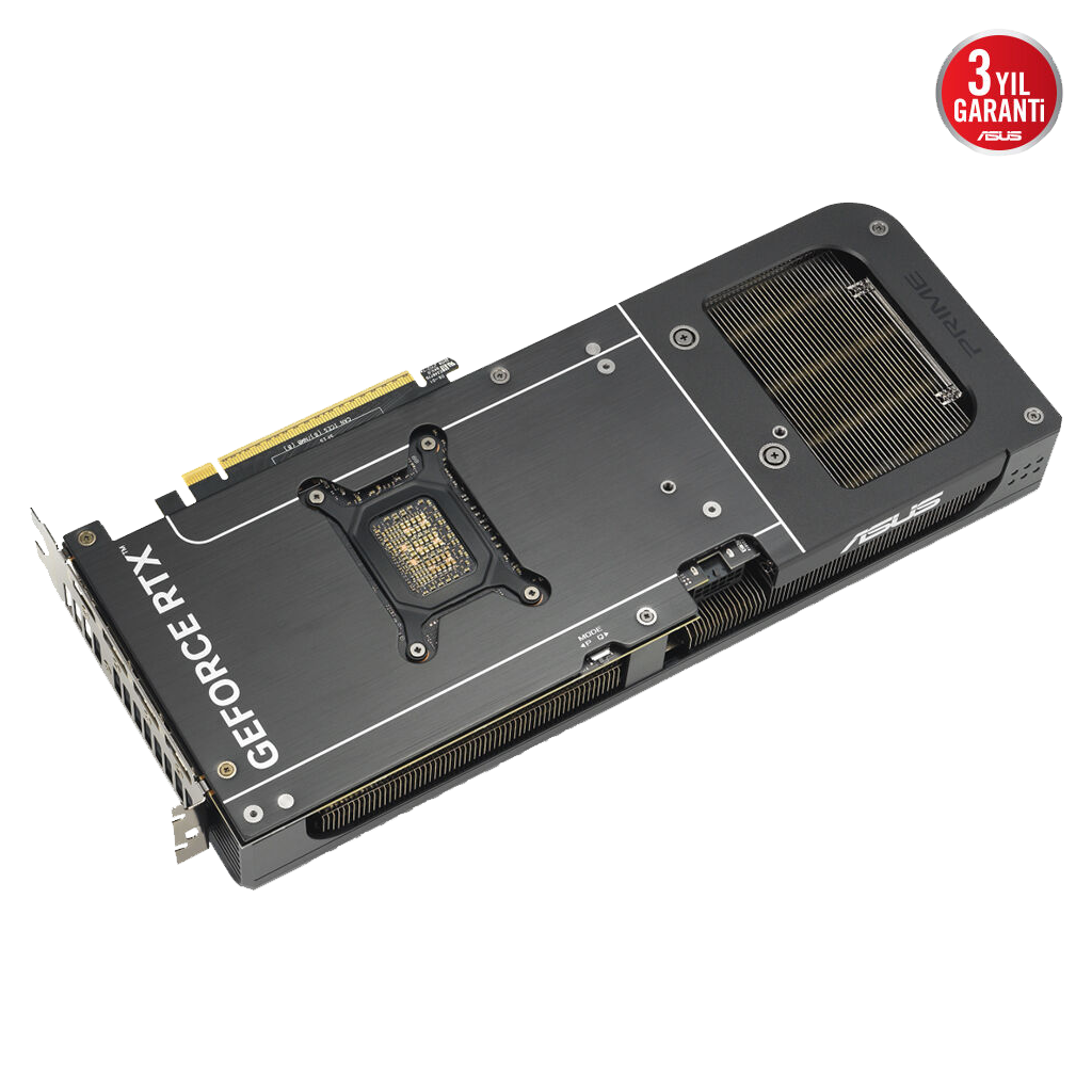 Prime RTX 5070, üç adet eksen teknolojili fanin ekran kartinin yan havalandirmasindan en iyi sekilde faydalanmasi ve en uygun termal performans sunmasi için özenle planlanmis koruma, sogutma blogu ve isi borusu düzeniyle 2,5 yuva yer kaplayan tasarima sahip.