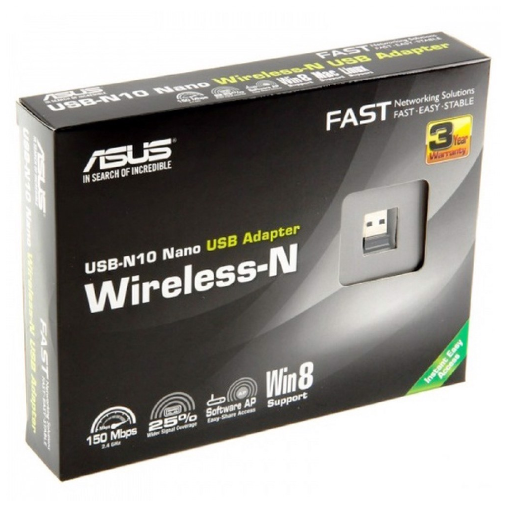 ASUS USB-N10 NANO, 150Mbps, 2.4GHz, USB2.0, WIRELESS ETHERNET