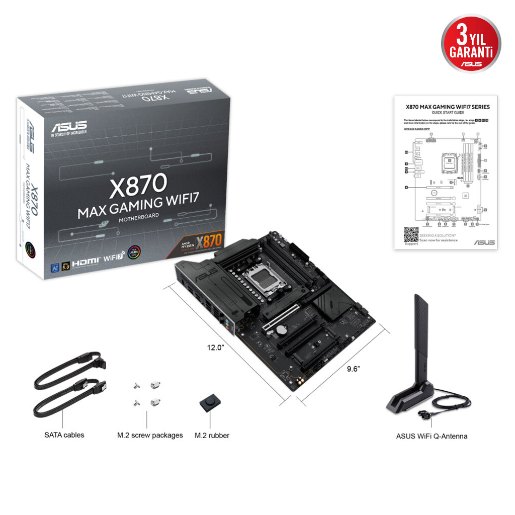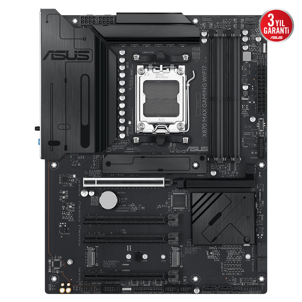 ASUS X870 MAX GAMING WIFI7, 4xDDR5, 3x M2, HDMI, DP, Type-C, Wi-Fi 7, Bluetooth v5.3, AM5 Soket GAMING Anakart