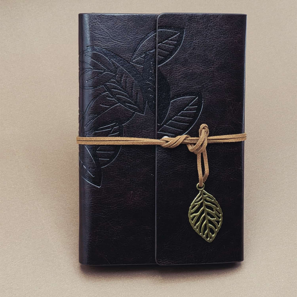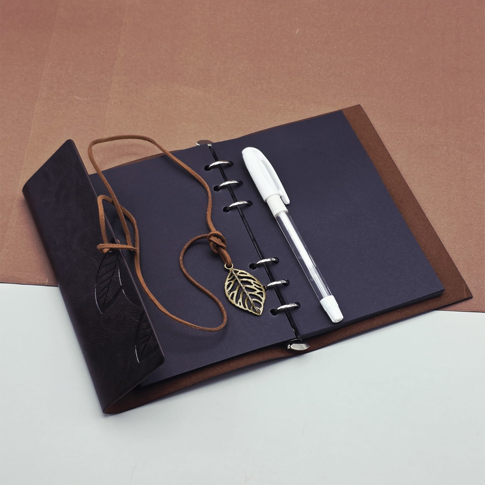 Beyaz Jel Kalem Ve Siyah Yaprakli Deri Hatira Defteri