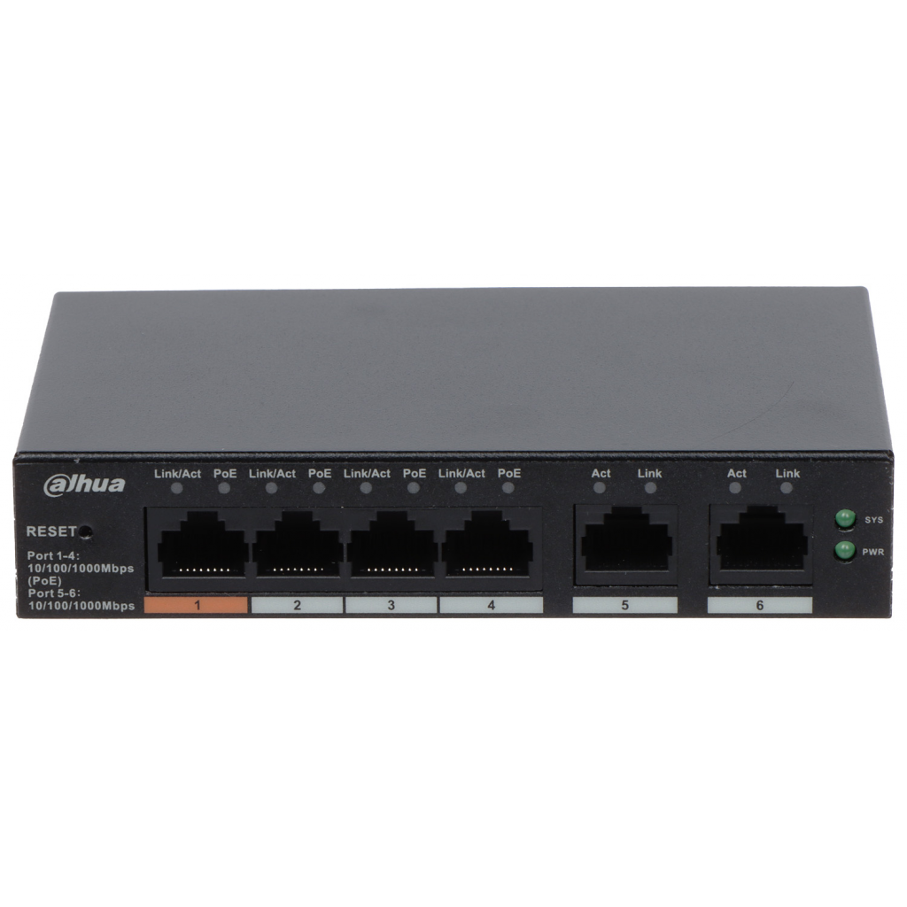 DAHUA CS4006-4GT-60, 4 Port, Gigabit, PoE 60W, 2 Port Uplink, Cloud Yonetilebilir, Switch