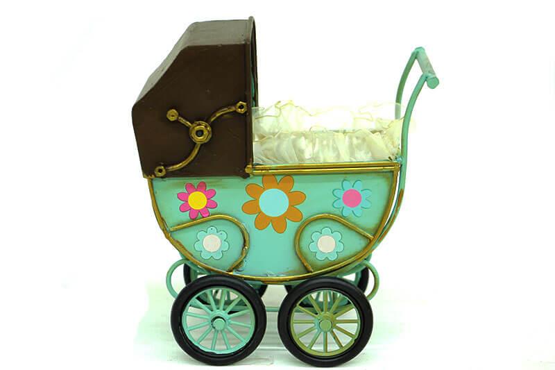 Dekoratif Metal Bebek Arabasi Biblo Vintage Hediyelik