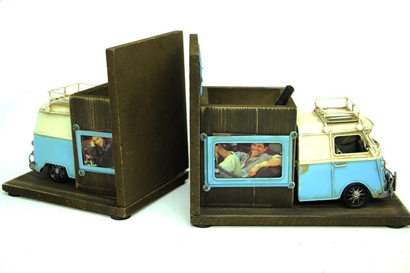 Dekoratif Metal Minibus Kitap Tutucu Kalemlik Cerceve Hediyelik